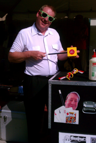 Ding-A-Ling the clown has over $10,000 worth of props, puppets costumes and magic. Ding-A-Ling and all our clowns or magicians use balloon pumps. We do not think blowing up a balloon up by mouth then handing to your child to put in his or her mouth is good idea. So take some time and look carefully at what you are getting for your money.