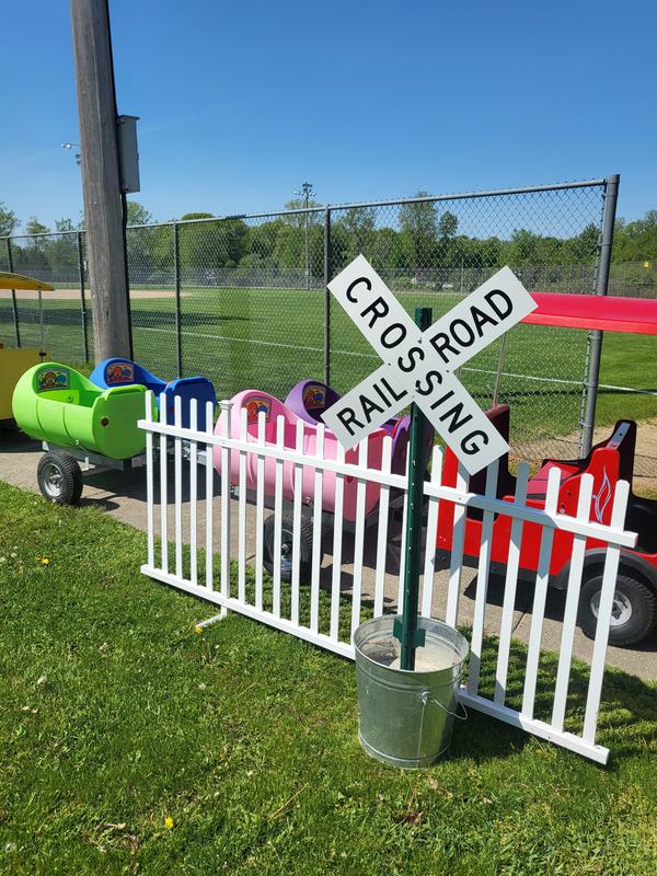 No tracks required! The train operates on pavement, parking lots, driveways, and other flat surfaces.