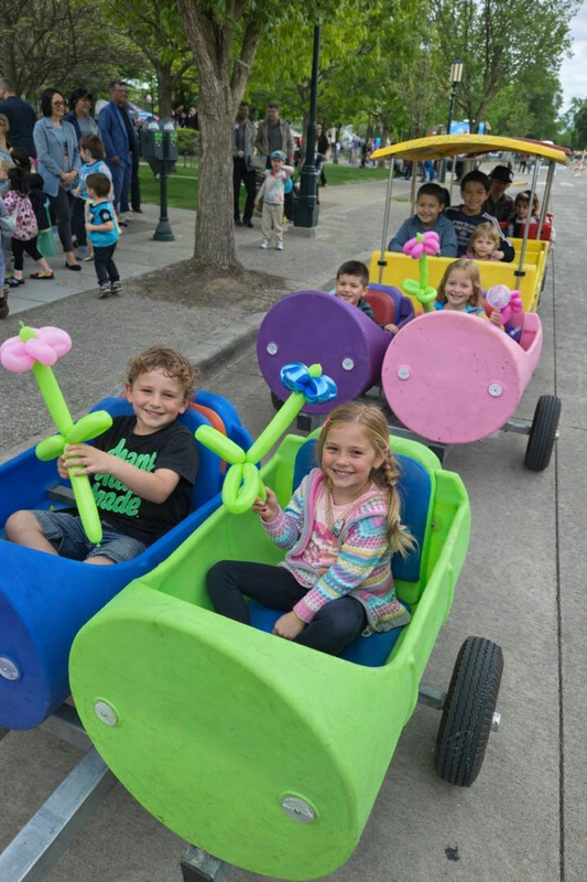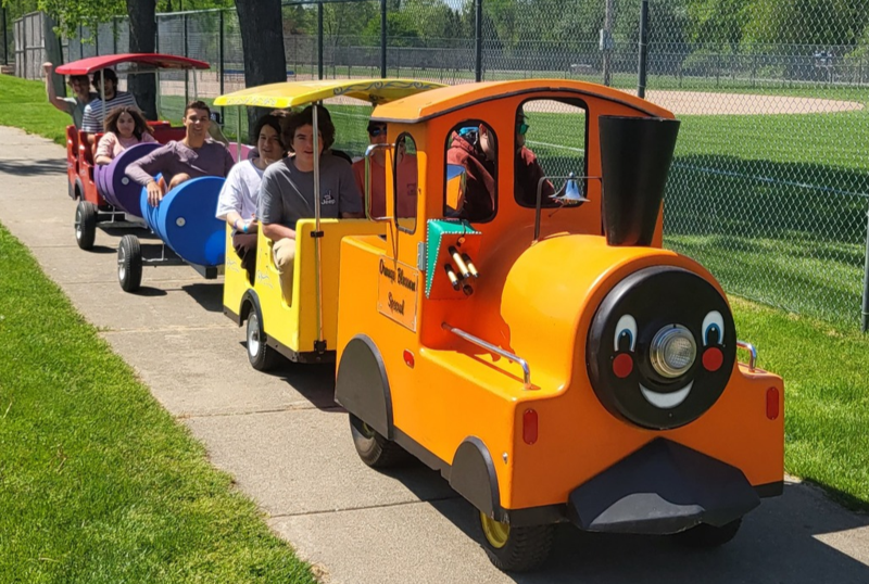 The Trackless Train naturally becomes a moving centerpiece of your event. It: